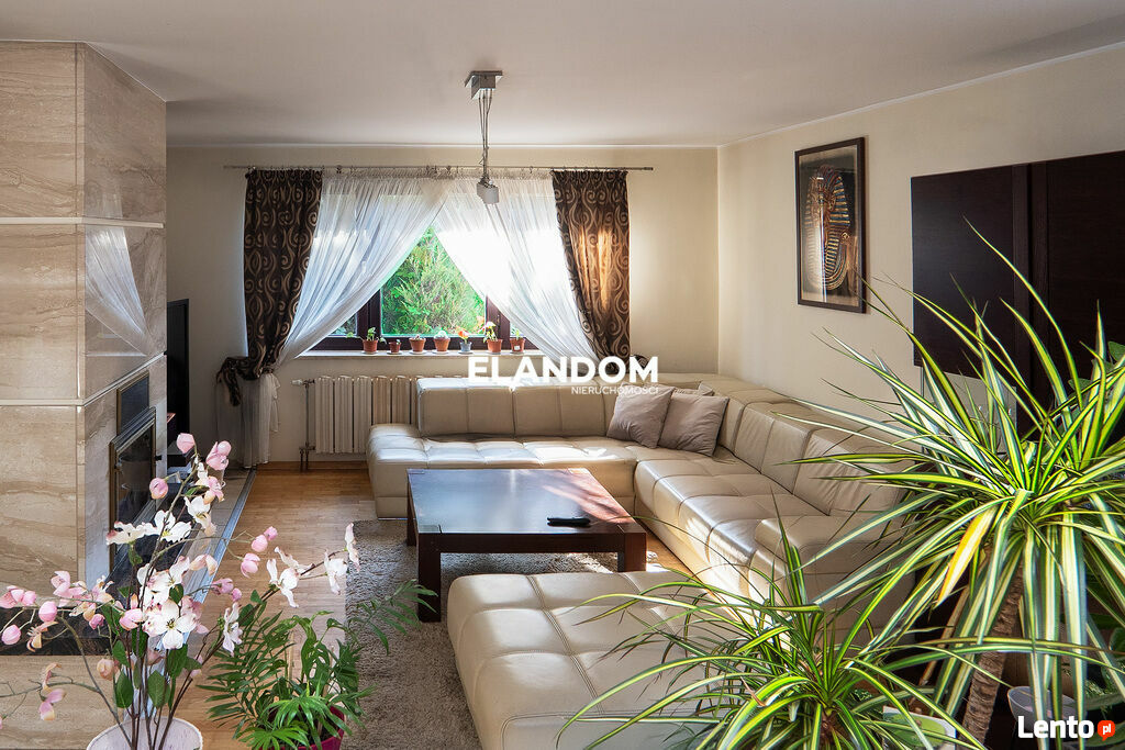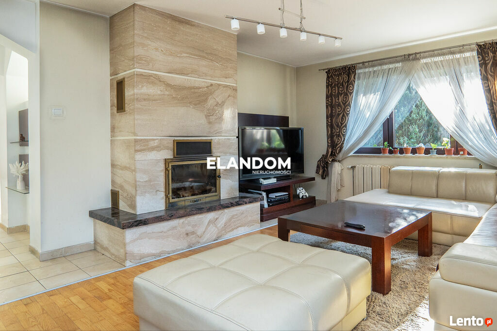 - duży salon z kominkiem i wyjściem na niewielki taras